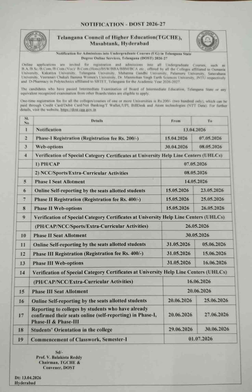 All the notifications issued by DOST will be available on the menu bar of DOST website https://dost.cgg.gov.in